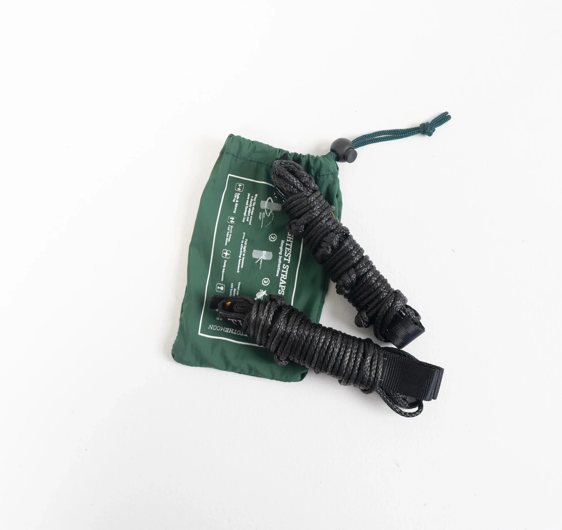 Le Lightest Straps est le système de suspension le plus léger de chez Ticket To The Moon. Ces sangles légères et compactes en polyester et polyéthylène permettent de fixer un hamac entre deux arbres.