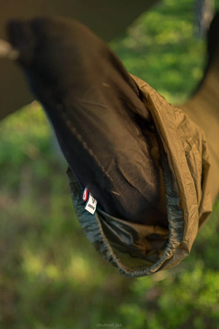 Le Larva de Lesovik est un sac de rangement pour transporter votre hamac de camping complet et donc prêt à l’emploi !