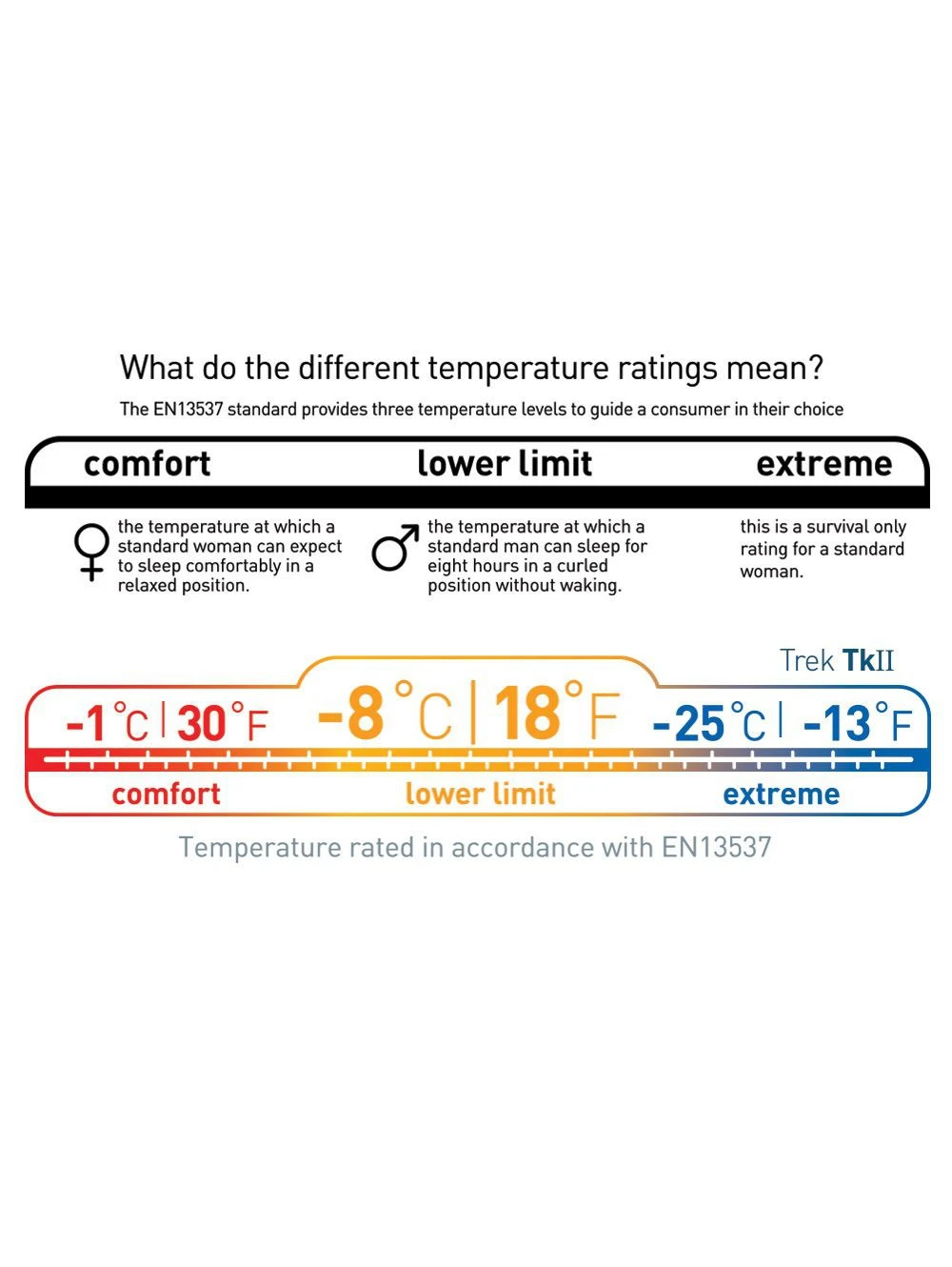 Grâce aux caractéristiques techniques, le Trek TK II obtient une température confort de -1°C ce qui est performant au regard du volume et du poids total du sac de couchage.