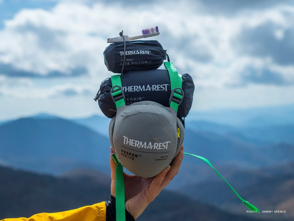 Le Vesper 45F/7C Quilt de Thermarest est un système de couchage minimaliste pour l’été. Il dispose d’une température de confort de 11°C. Il peut être aussi utilisé en complément de votre sac de couchage pour un apport de chaleur supplémentaire. Il est dépourvu de capuche, de collerette et n’a pas de garnissage dans le dos, c’est votre matelas de sol qui servira d’isolant.